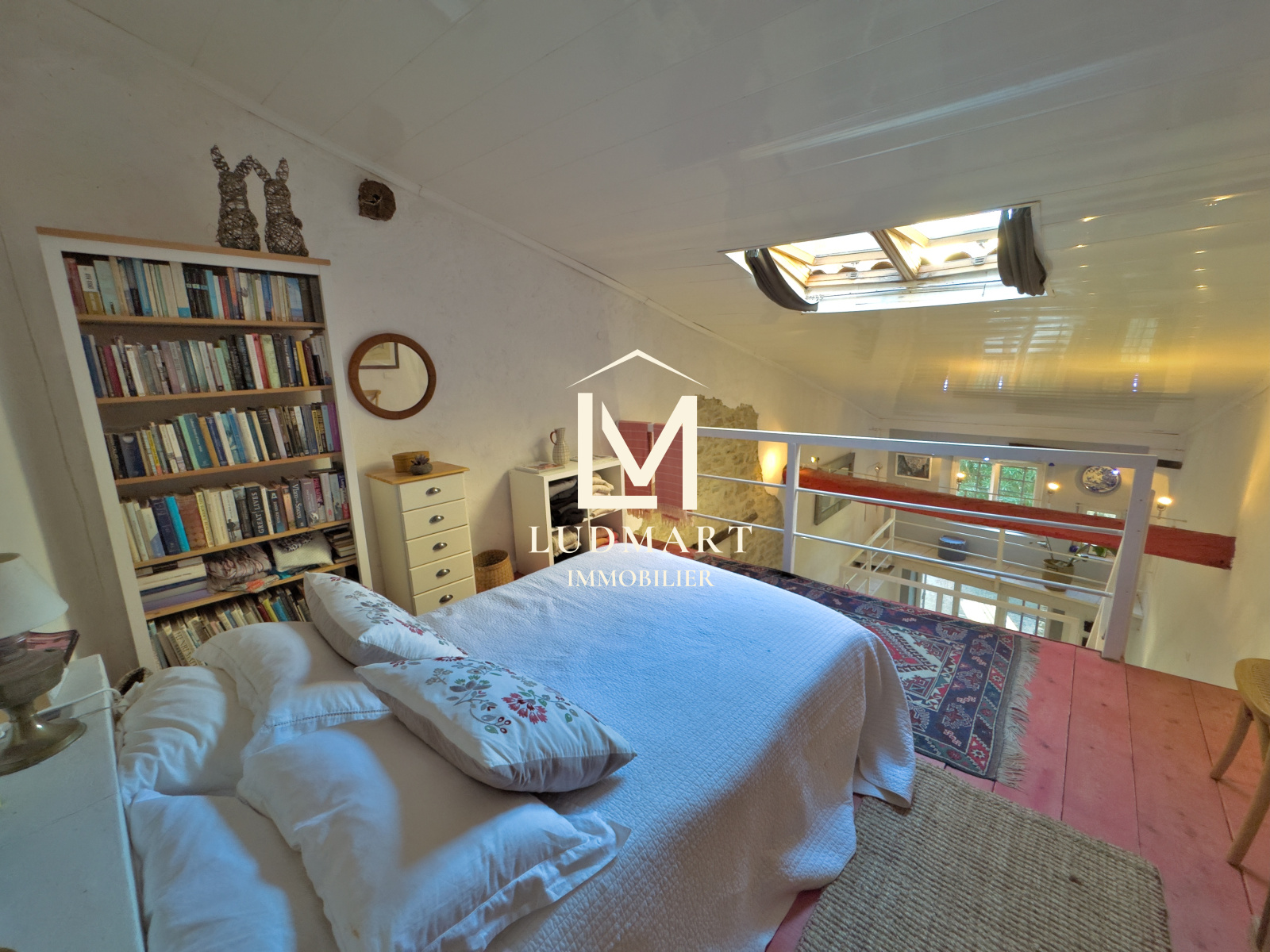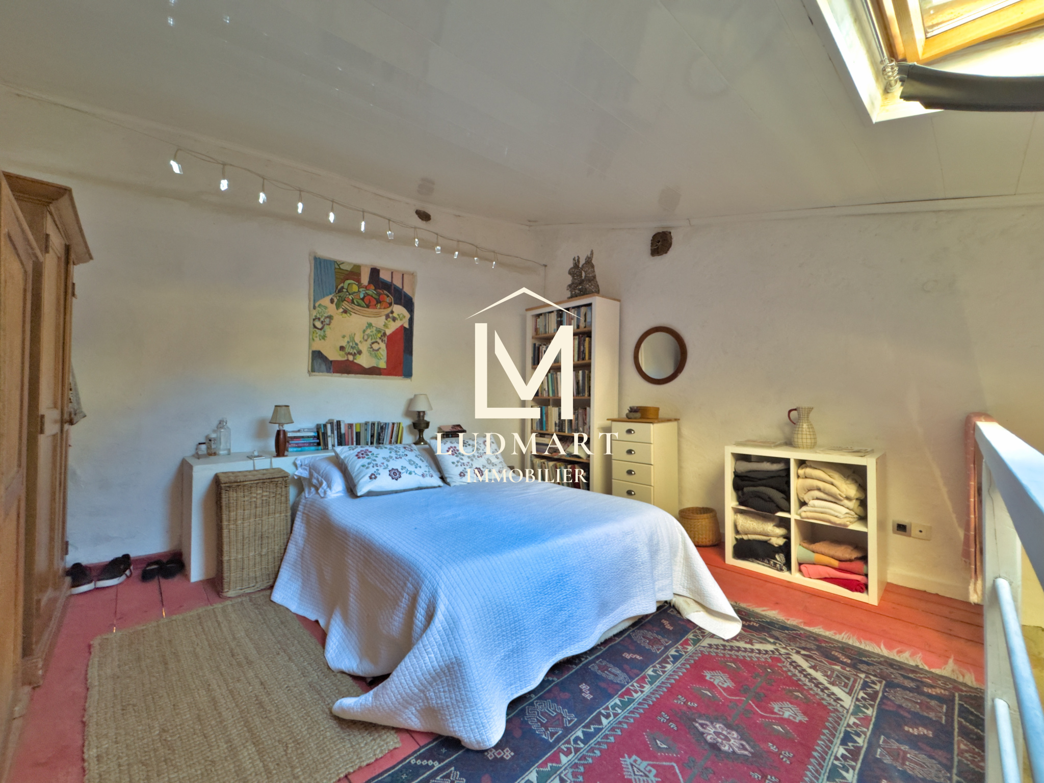 L’étage supérieur abrite une belle chambre mansardée, lumineuse et pleine de charme.