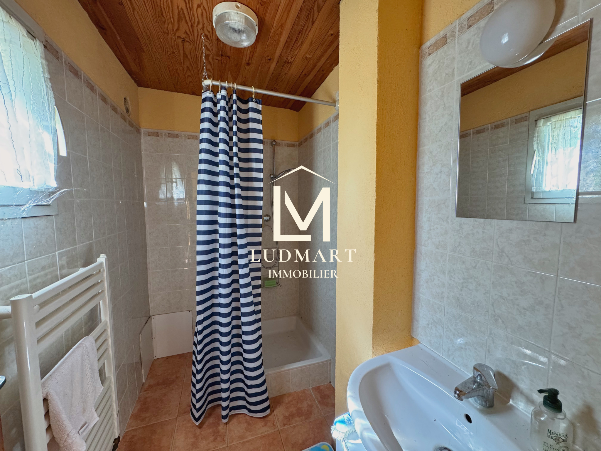 Rez-de-chaussée : l’habitation principale offrant une cuisine, un séjour lumineux (avec possibilité d’agrandissement), trois chambres, une salle de bains et un WC séparé.