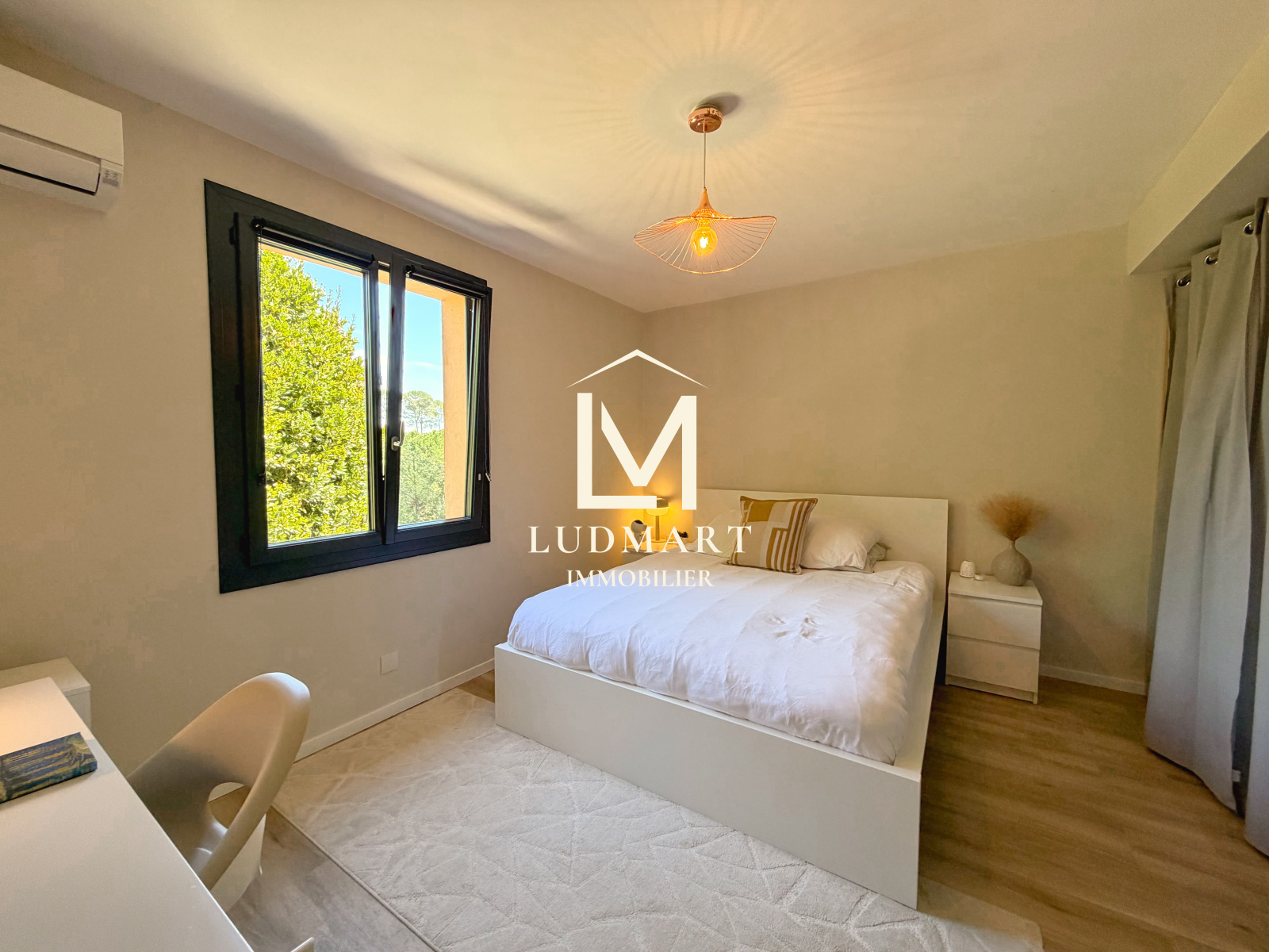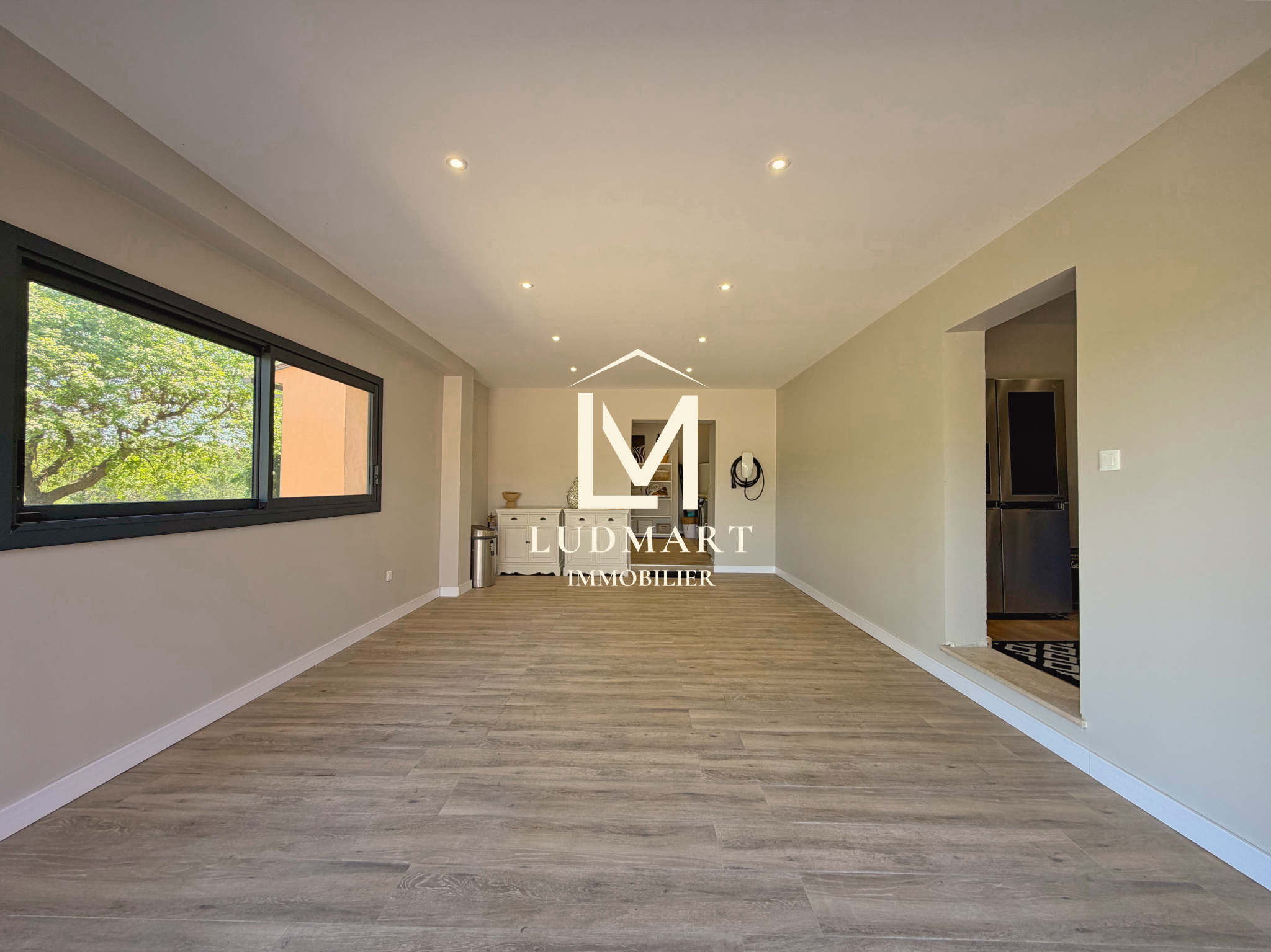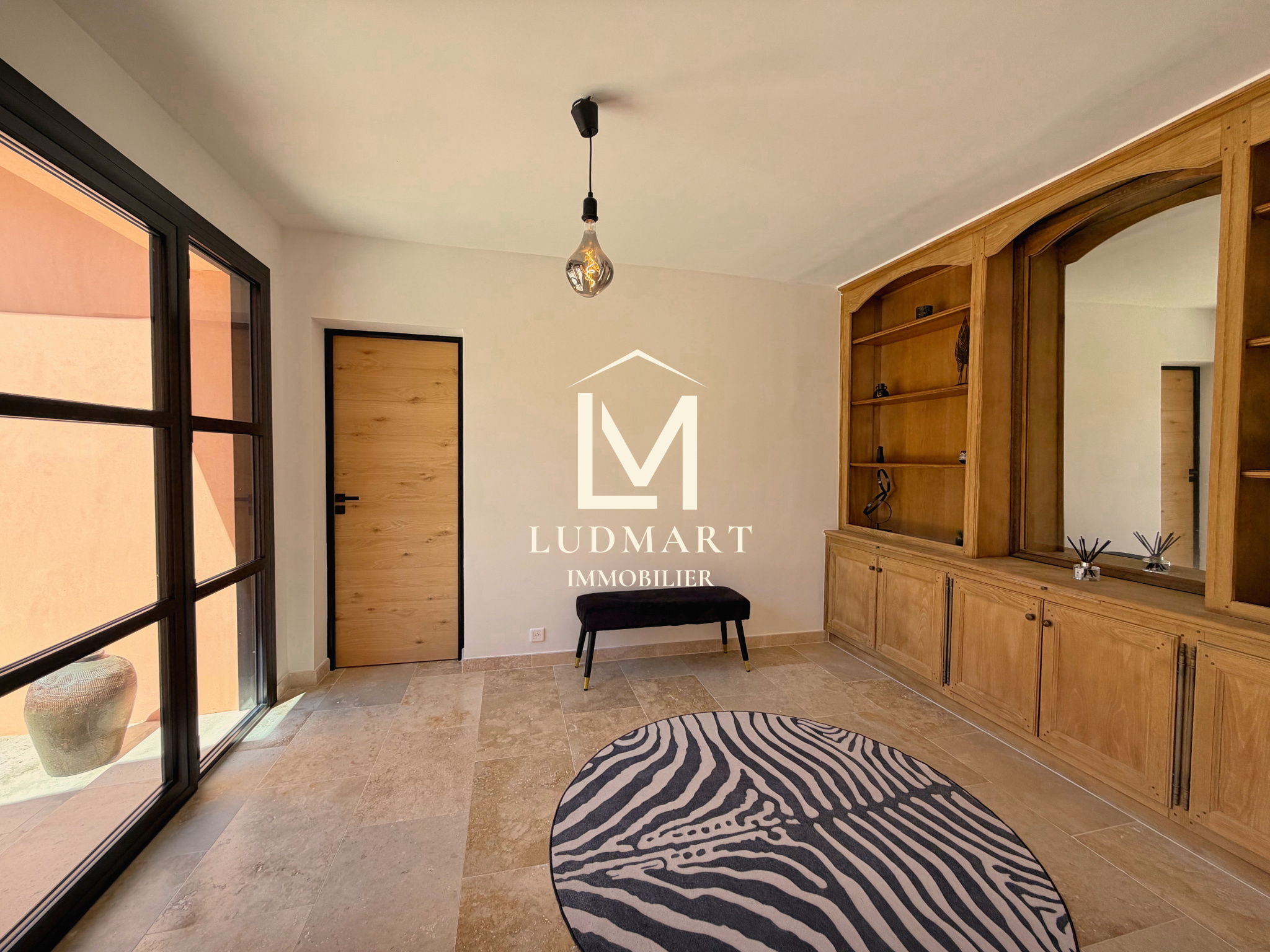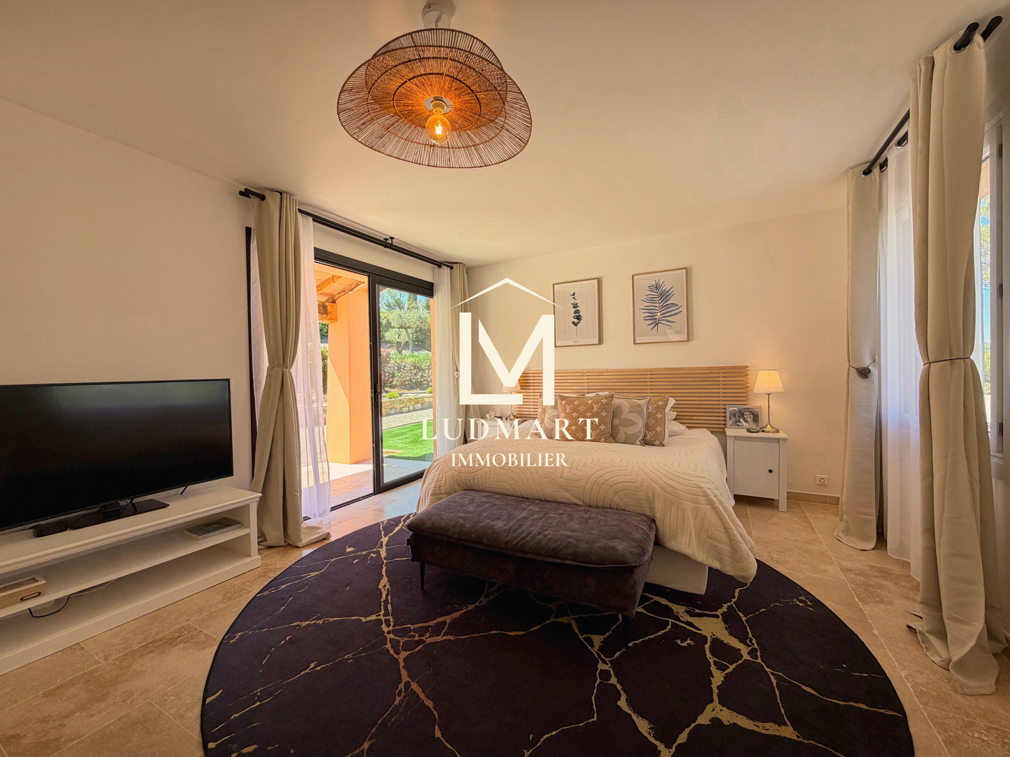 L’entrée ouvre sur de vastes espaces de réception : une cuisine élégamment équipée, prolongée par un salon et une salle à manger baignés de soleil. La suite principale, de plain-pied, dispose d’un dressing et d'une salle de bains complète.