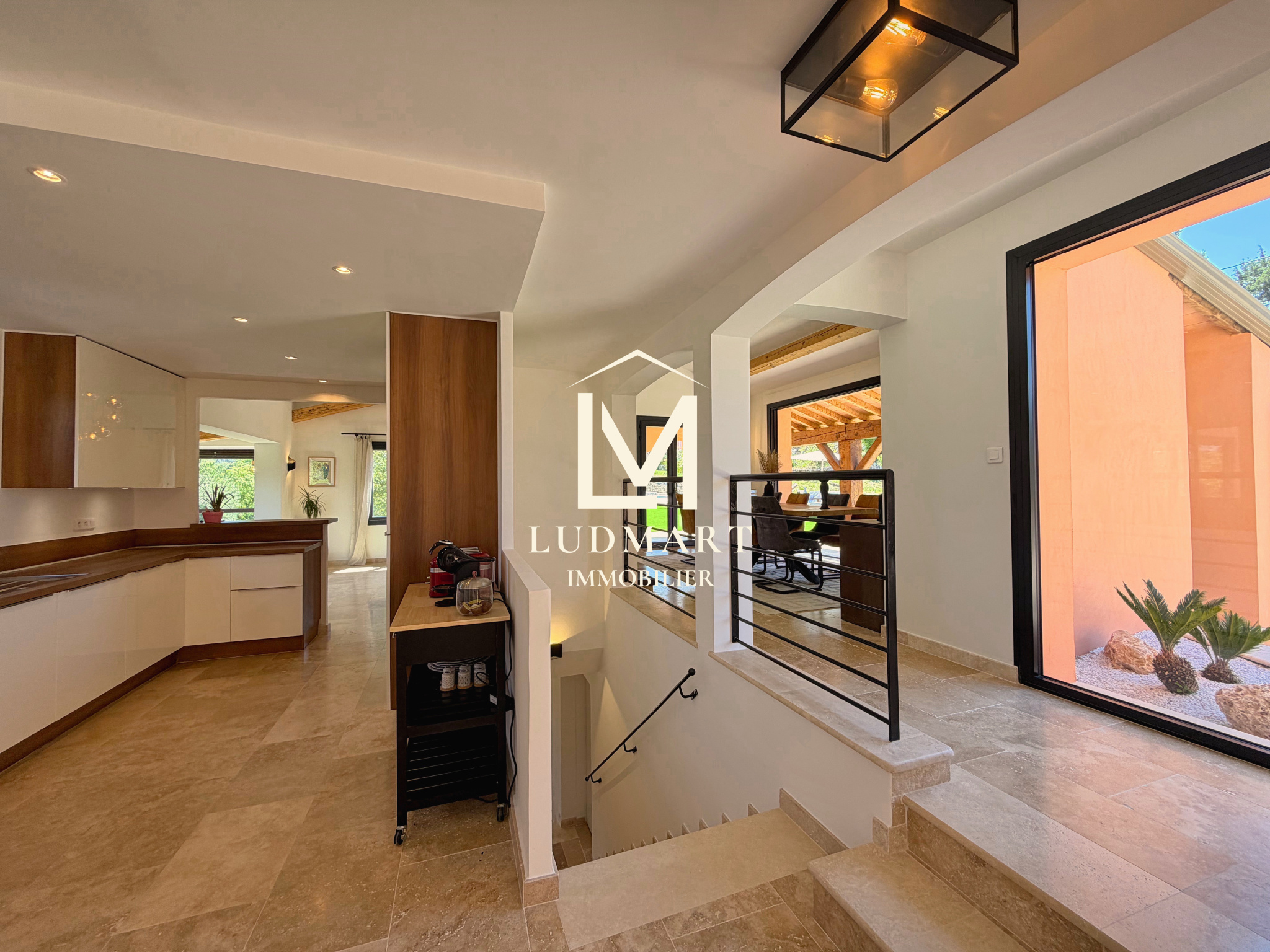 Lorgues (83510)À quelques minutes à pied du centre de Lorgues, en position dominante et à l’abri des regards, cette villa d’environ 240 m² se déploie au cœur de plus d’un hectare de végétation méditerranéenne.