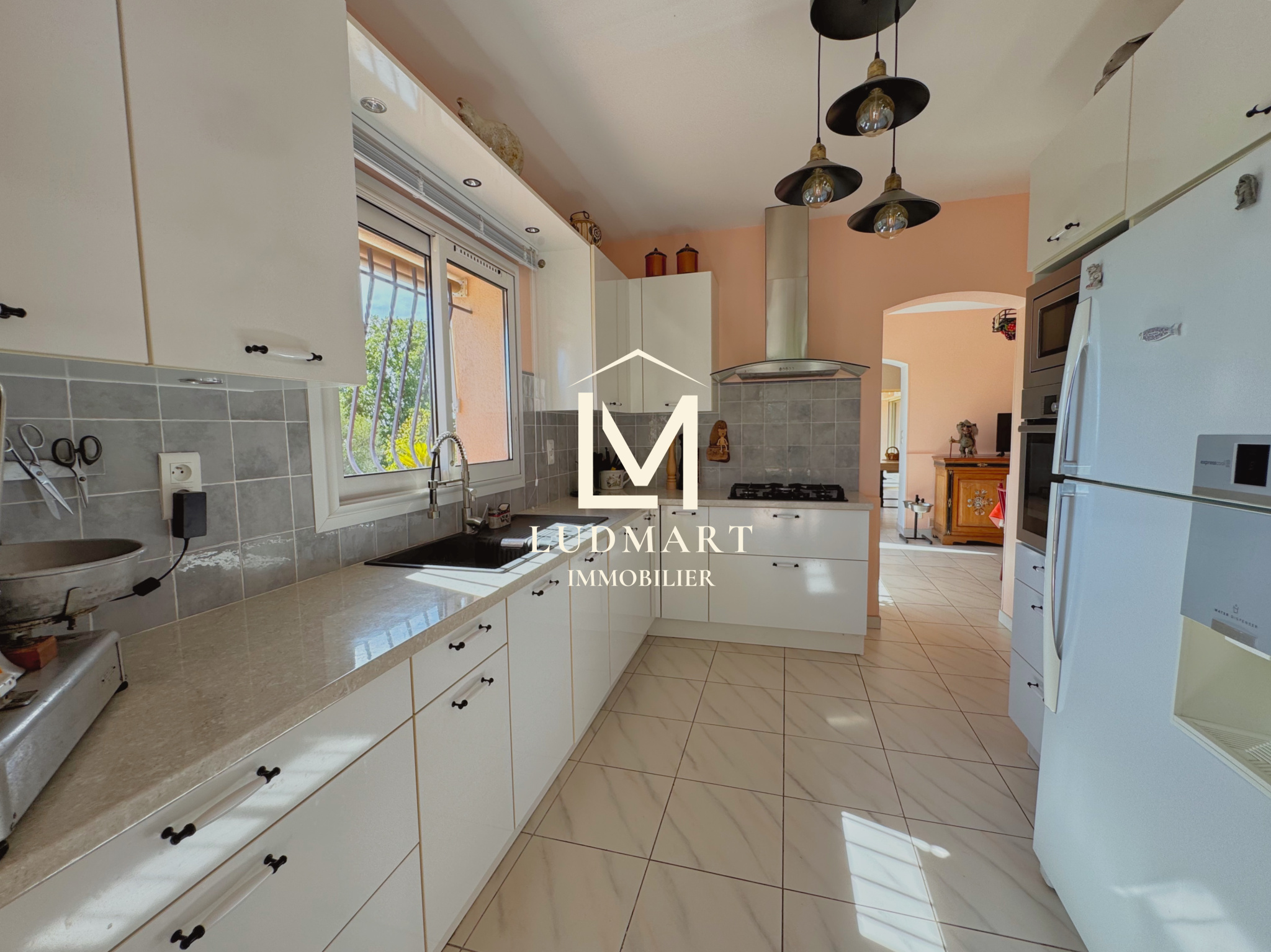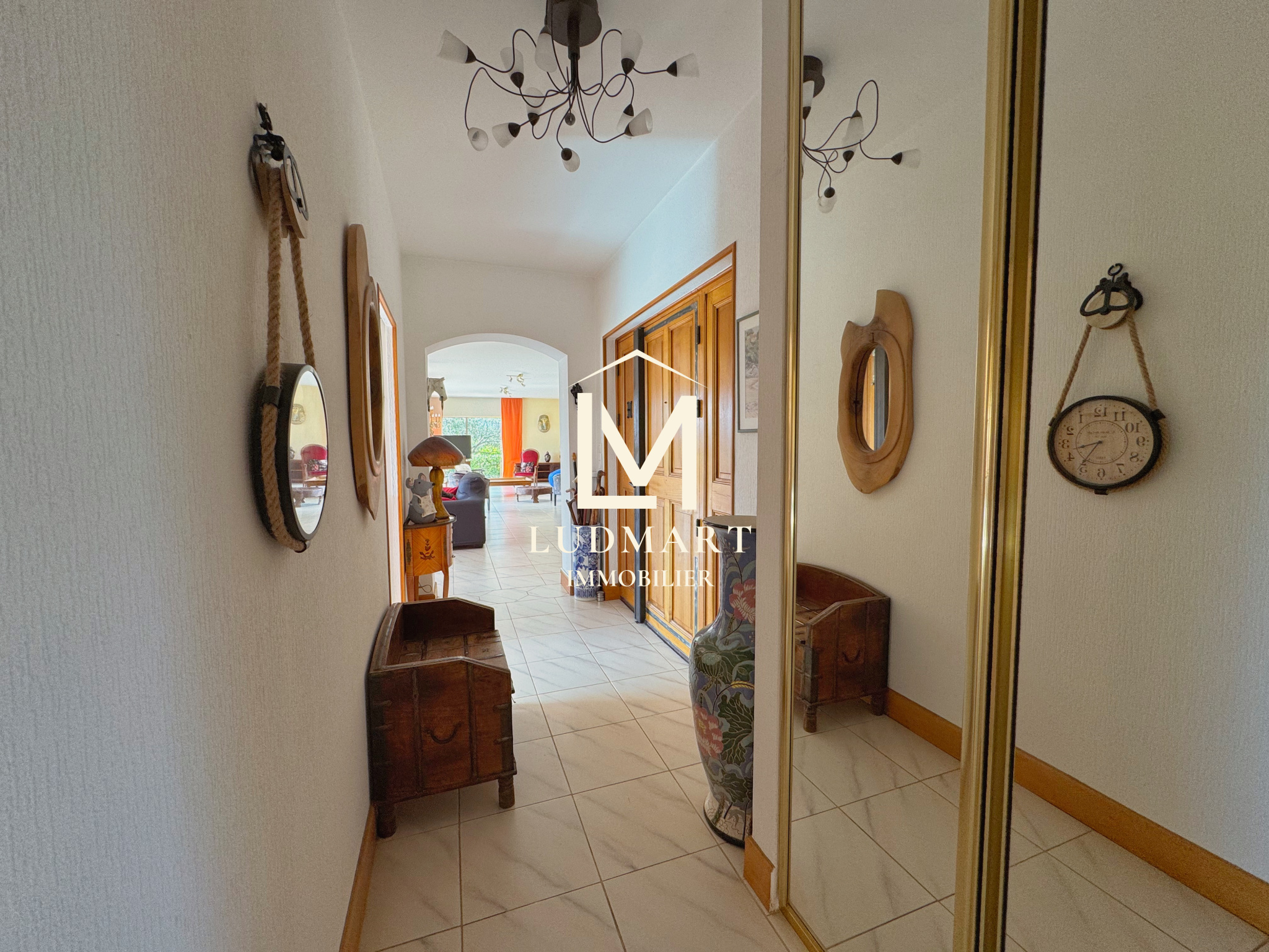 La maison principale développe environ 250 m² habitables, auxquels s’ajoutent de vastes annexes pour atteindre près de 350 m² de superficie totale. L’organisation des espaces, majoritairement de plain-pied, a été pensée pour le confort et la fluidité du quotidien. Dès l’entrée par un patio accueillant, on découvre un superbe séjour lumineux de près de 80 m², prolongé par une salle à manger conviviale et une cuisine parfaitement équipée avec arrière-cuisine, buanderie, cellier et cave.